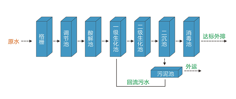 常見一體化廢水處理設(shè)備主要組成部分為: 1.水解酸化池;2. 接觸氧化池;3. 雜質(zhì)沉淀池;4.消毒處理;5.污泥好氧消化池。